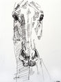 The line runs, marks, weaves its way across this white earth. It signs with her black what will become a drawing then a form, to end in an emotion. I forget that these planes overlap and finally form a 3D.